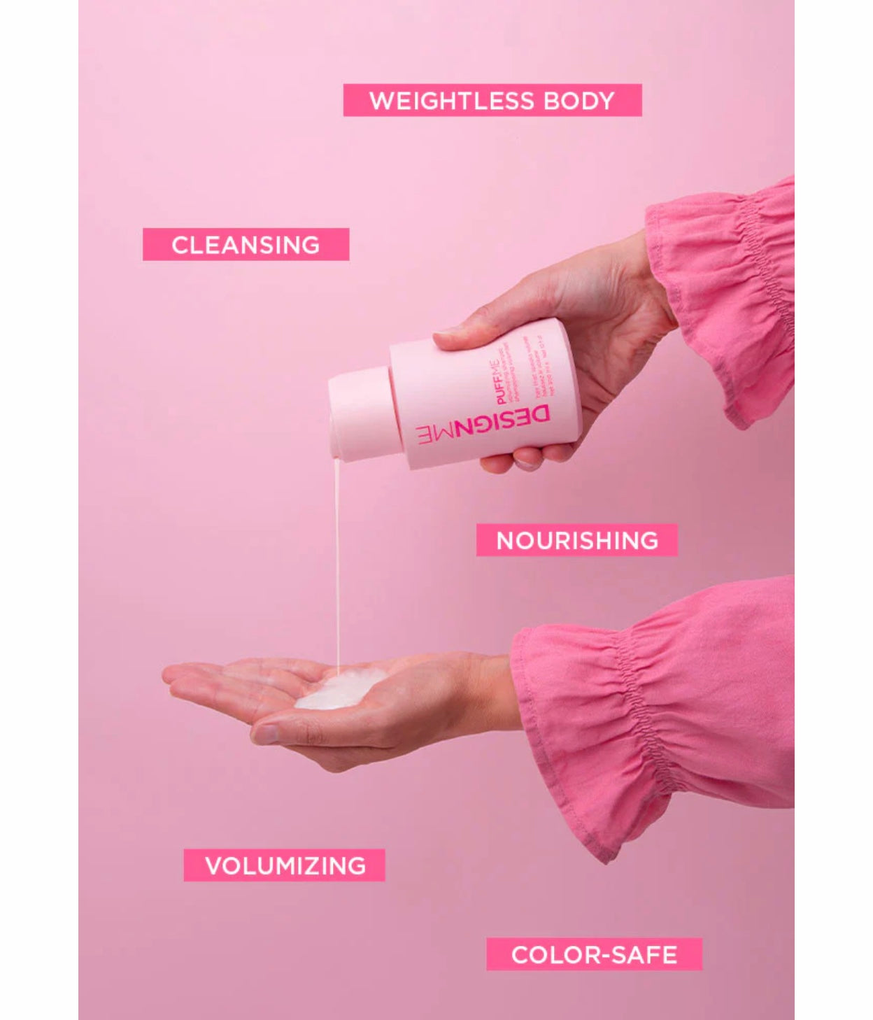 - PUFF.ME volumizing shampoo (300ml): Deeply cleanses to reveal weightless volume & body without over-stripping.